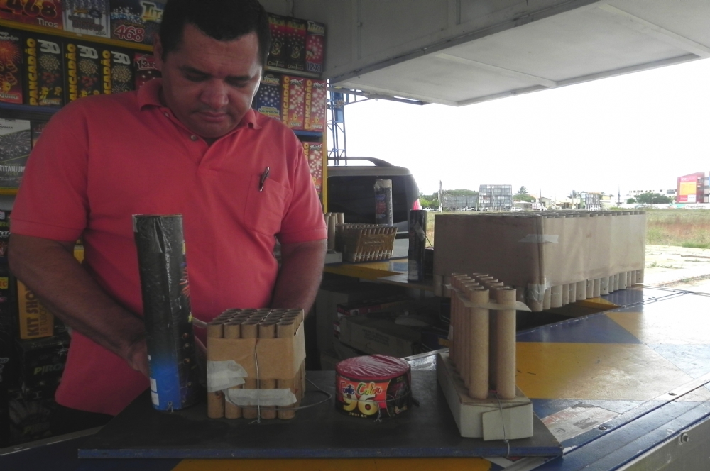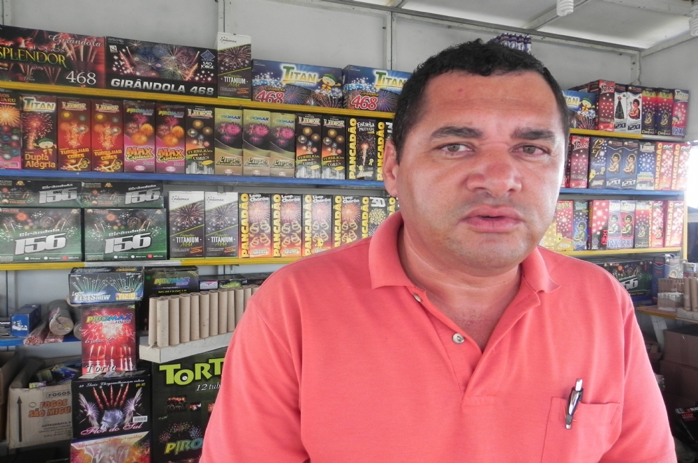 | Lucival Soares comercializa fogos há sete anos no bairro Coroa do Meio |