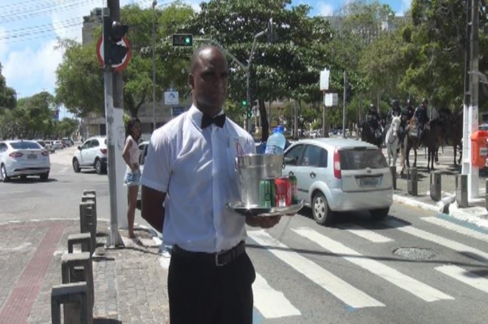 Foi a partir de uma decisão arriscada que Wágner Tavares dos Santos começou a mudar a sua vida. Há três anos ele decidiu largar seu emprego com carteira assinada para vender água nos semáforos do centro de Aracaju. Hoje o homem adota um smoking como traje e se intitula de ‘Garçom do Trânsito’. Vende pelo menos 20 fardos de água mineral por dia e faz sucesso com os condutores.