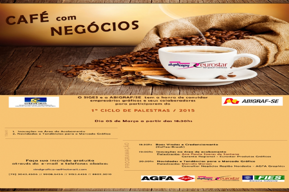 Com o objetivo de discutir questões gerenciais, tecnológicas e ambientais, além de fomentar o crescimento da indústria gráfica no estado, no próximo dia 05 de março, o Sindicato das Indústrias Gráficas do Estado de Sergipe (SIGES) realiza a primeira edição do Ciclo de Palestras de 2015.