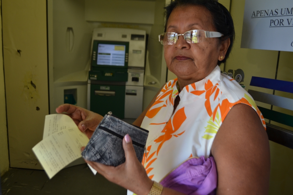 Após percorrer três agências a qual é cliente, a aposentada Maria Dilma Santos, tentou realizar um pagamento em um cash da quarta agência, mas sem êxito. “Desde ontem (segunda-feira) que tento fazer um pagamento e não consigo. Já fui a três agências e essa é a quarta”, reclamou a aposentada.