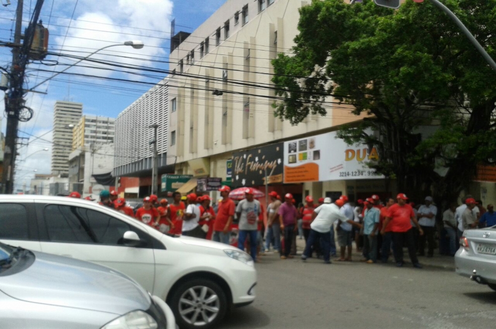 | Ato na porta do BNB (Foto: Magna Santana) |