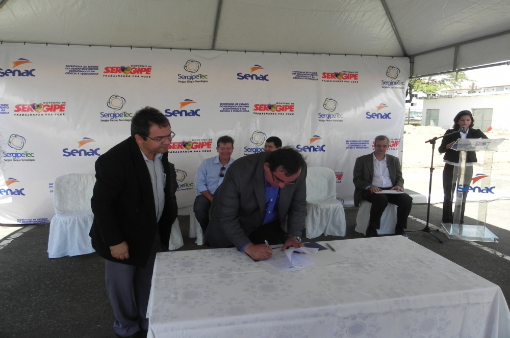 Com o objetivo de oferecer uma qualificação profissional aos jovens carentes do bairro Santos Dumont e adjacências, representantes do Serviço Nacional de Aprendizagem Comercial (SENAC) e do Sergipe Parque Tecnológico (SergipeTec) assinaram nesta sexta-feira, 15, um Termo de Outorga de Permissão de Uso (TOPU) para a construção de uma área do SENAC nas instalações do Centro Empresarial de Petróleo, Gás, Energia e Mineração (CPGEM), localizado na Avenida Maranhão, bairro Santos Dumont.