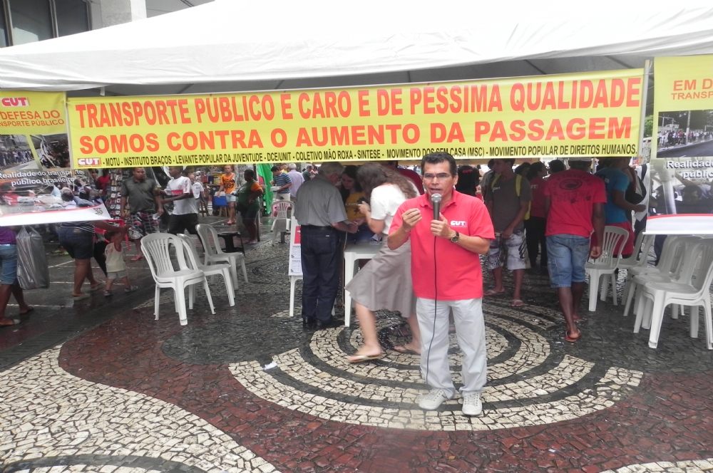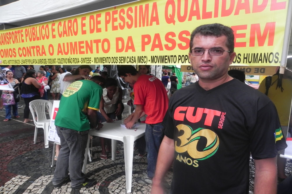 “A gente está ouvindo a população para saber o que acha desse aumento da passagem. Nós entendemos que é abusivo, ilegal, imoral. Pela planilha enviada pelo prefeito João Alves à Câmara, o aumento só poderia ser até R$ 2, 43. Os vereadores achando pouco aumentaram para R$ 2,45, no nosso entendimento é ilegal esse valor”, ressalta o vice-presidente da CUT, Roberto Silva.