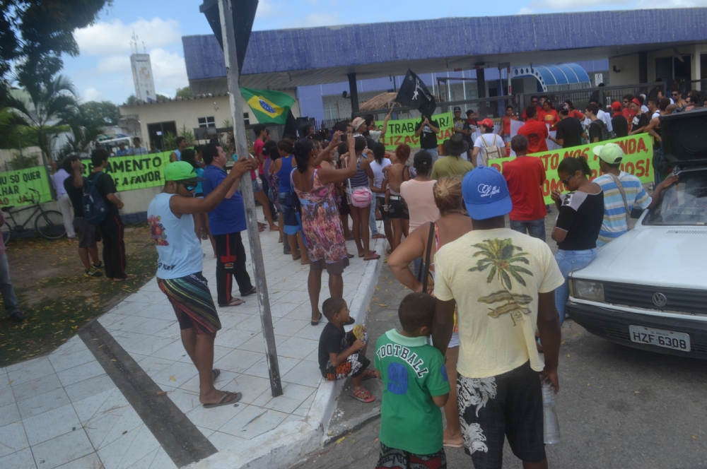 | Manifestantes em frente a PMA (Foto: Portal Infonet) |