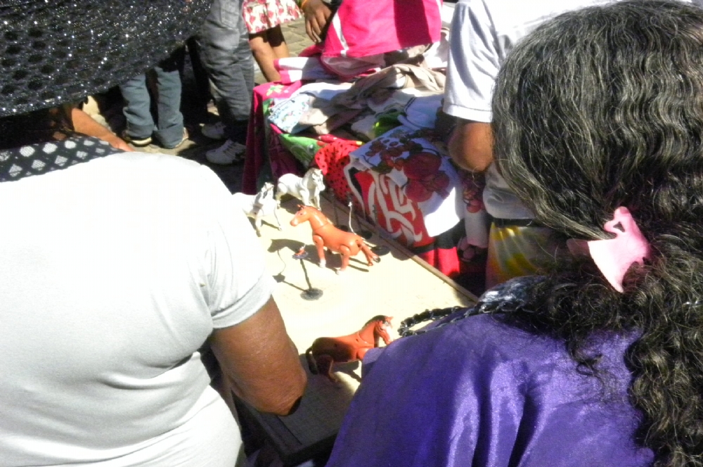 A música era tocada pela aparelhagem de um carrinho de mão repleto de DVDs religiosos pirateados conduzido por um ambulante durante a festa anual de Nosso Senhor dos Passos, que se iniciou no último sábado, 3. Longe de ser o único comerciante a ocupar as áreas próximas à igreja apinhada de pagadores de promessas que visitam a cidade, o homem abria passagem entre os vendedores e fieis. Na praça em frente à Matriz, feirantes montaram dezenas de tendas e tabuleiros, expondo vários tipos de artigos de consumo.