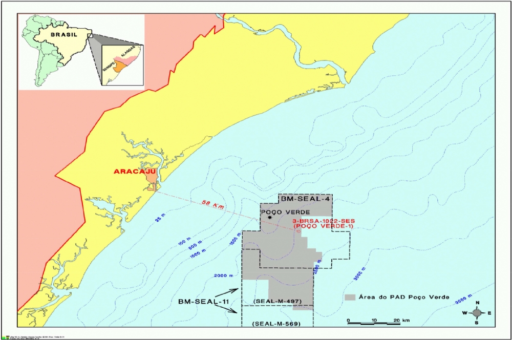 O poço, conhecido informalmente como Poço Verde 1, está localizado a 58 km da costa de Aracaju, em local onde a profundidade d’água é de 2.196 metros. Foi verificada a existência de reservatórios com boas condições de porosidade, confirmando as expectativas do projeto. A acumulação Poço Verde integra o programa de desenvolvimento da Bacia de Sergipe-Alagoas em águas profundas.