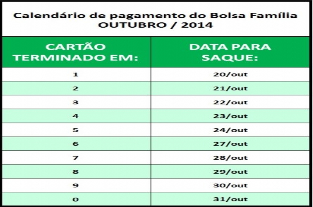 Para saber em que dia sacar o benefício do Bolsa Família, o beneficiário deve observar qual é o último algarismo do Número de Identificação Social (NIS) impresso no cartão. Os beneficiários com cartões terminados em “1” recebem no primeiro dia do calendário de pagamento. Os terminados em “2”, no segundo dia, e assim por diante.