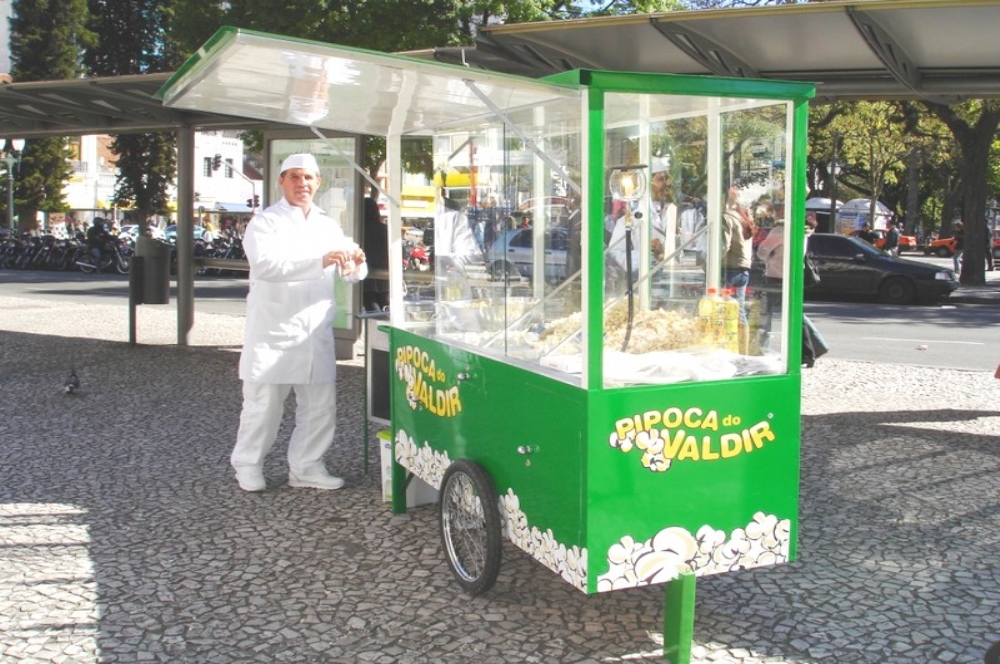 Depois de esperar vários anos para ter direito a licença da prefeitura, ele conseguiu viabilizar seu carrinho de pipoca. O diferencial é que o carrinho é muito limpo, o uniforme bastante branco e ainda tem kit higiene que vem junto com o saquinho de pipoca. Esse conjunto de fatores, associados à simpatia do Valdir, colaborou bastante na conquista de clientes.