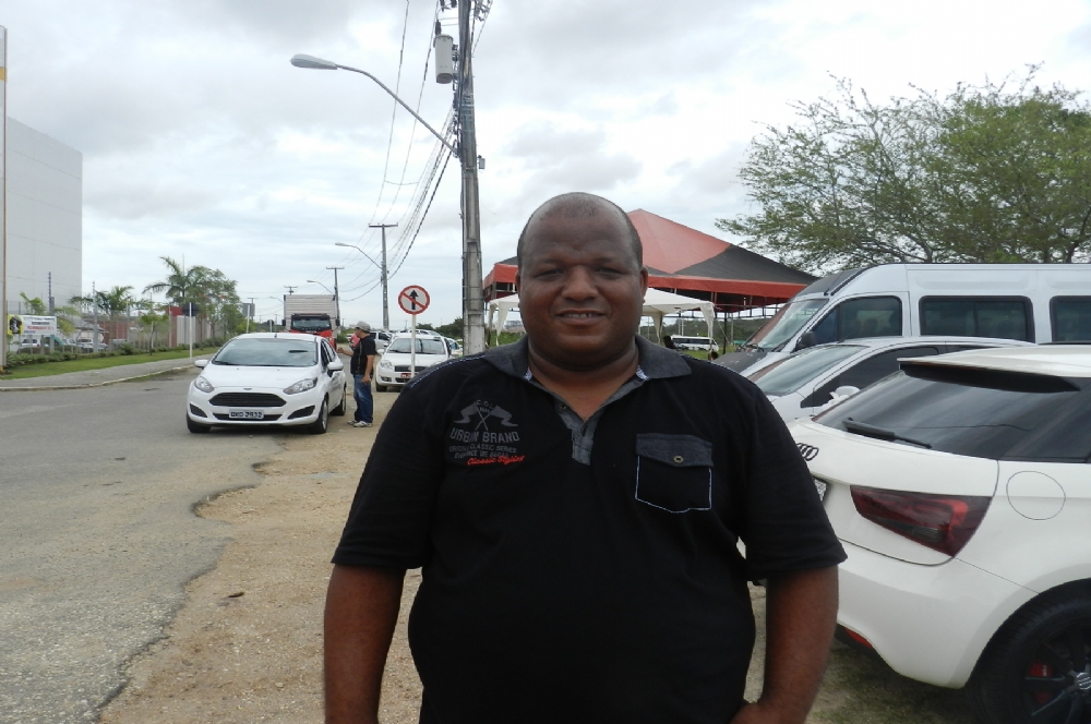 Durante a realização do leilão, ex-funcionários do grupo Bomfim, permaneceram na porta do TRT para acompanhar o leilão. O cobrador Enilson Barbosa era só comemoração com a venda do imóvel.