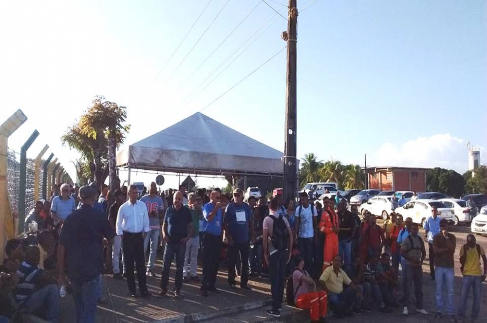 | Manifestantes tentam sensibilizar Petrobras a manter fábrica (Foto: facebook Sindipetro Al/SE) |