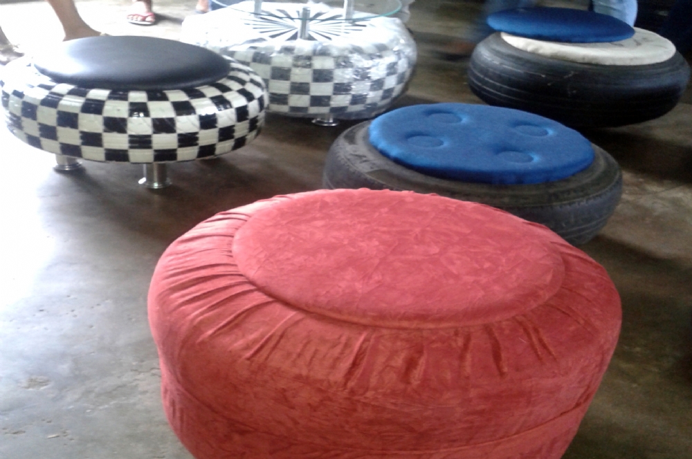 | Puffs são produxidos com pneus (Fotos: divulgação) |