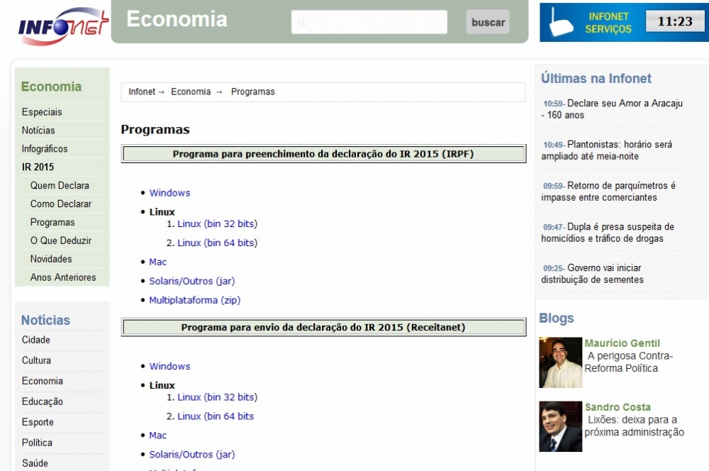 A página de Economia do Portal Infonet disponibiliza os programas necessários para preenchimento e envio da declaração do IR 2015 (IRPF). Na página você terá informações sobre quem declara e como declarar, além do que deduzir e novidades. Acesse.