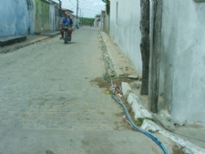Várias mangueiras saem da praça e são emendadas pro todas as ruas do povoado