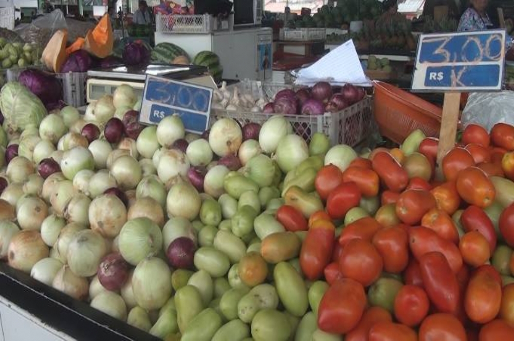 | Cebolas e tomates, ambos, sendo vendidos em média a R$ 3 (Foto: Portal Infonet) |