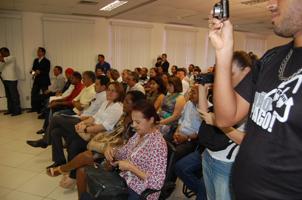 | Secretários, assessores, vereadores e estudantes acompanham anúncio |