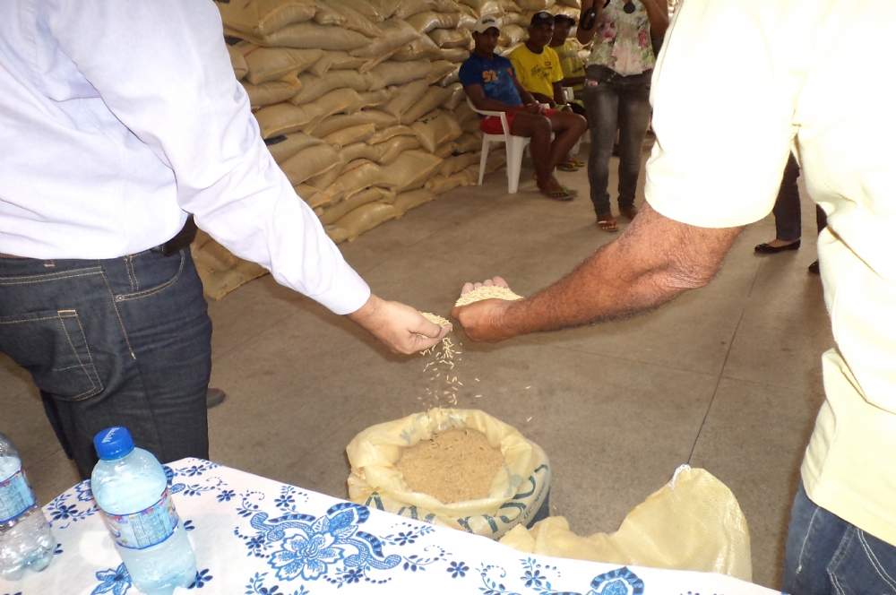 Das 290 toneladas de sementes doadas, 190 foram para o perímetro de Betume, 70 para o de Cotinguiba/Pindoba e 30 para o perímetro de Propriá. As variedades adquiridas foram Epagri 109, SCSBRS Tio Taka e SCS 114 Andosan, recomendadas pela equipe de Assistência Técnica e Extensão Rural (Ater) dos perímetros.
