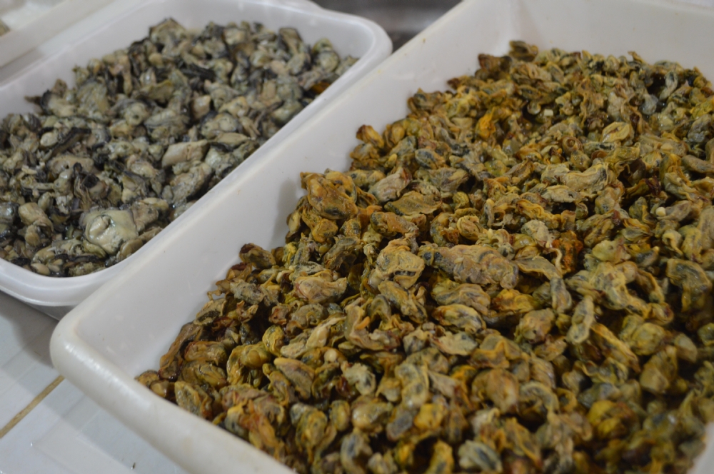 O mesmo caso acontece com as ostras e o sururu. Segundo Maria José, que há 15 anos vende os produtos, o mais procurado nesse período é o sururu de mangue, que é vendido a R$ 30 o quilo. Já o sururu de croa e a ostra custam R$ 15, e R$ 35, respectivamente. De acordo com ela, “a procura está menor que no ano passado”.