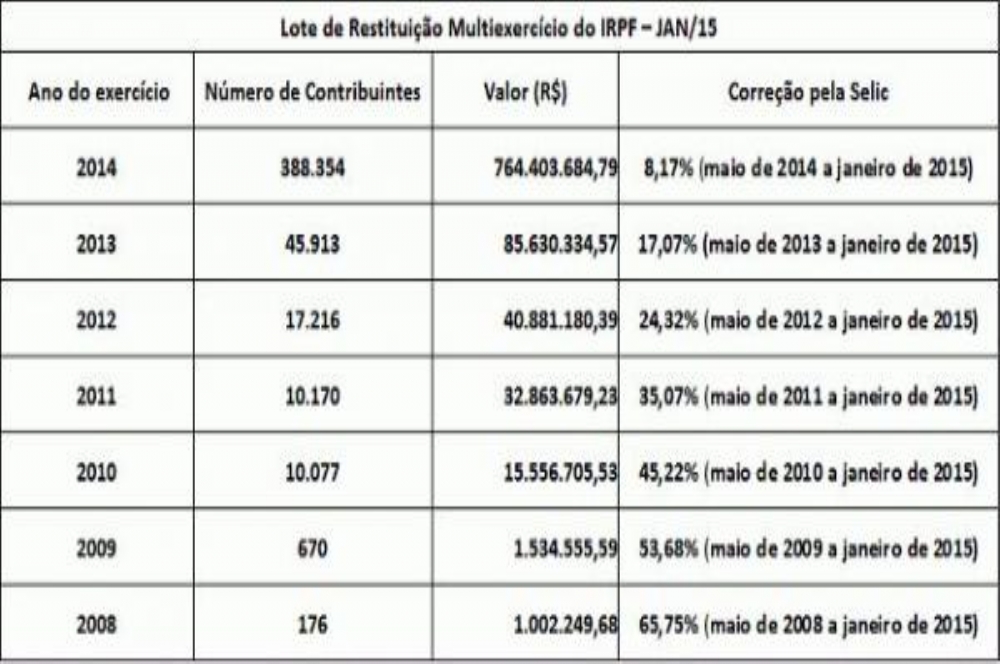 De acordo com o órgão, o crédito bancário para 472.576 contribuintes será efetuado no dia 30 de janeiro, totalizando o valor de R$ 941.872.389,78. Desse total, R$ 124.829.894,05 referem-se ao quantitativo de contribuintes idosos, de pessoas com deficiência ou com doença grave.