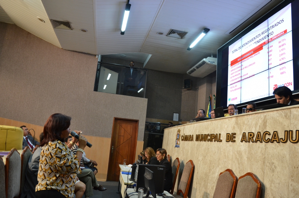 No Dia Mundial do Consumidor, o Procon de Sergipe divulgou a relação das dez empresas que são alvo do maior número de reclamações devido à deficiência na prestação dos serviços no Estado. A relação foi apresentada aos vereadores de Aracaju no final da manhã desta sexta-feira, 15, em sessão especial promovida pela Câmara Municipal, atendendo requerimento do vereador Lucas Aribé (PSB). Os números foram revelados pela advogada Gilsa Brito, diretora do Procon de Sergipe, órgão de Defesa do Consumidor vinculado à Secretaria de Estado da Justiça e Cidadania (Sejuc).