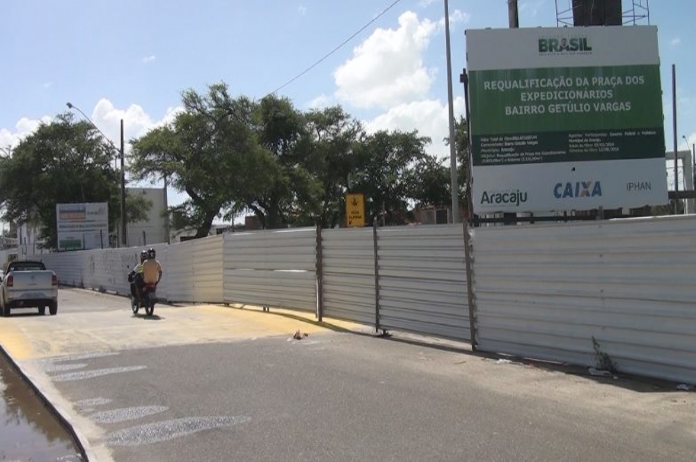 O recurso de R$ 1,27 milhão oriundo do Programa de Aceleração e Crescimento (PAC) Cidades Históricas foi assegurado pelo Instituto do Patrimônio Histórico e Artístico Nacional (Iphan), mas a reforma da Praça dos Expedicionários, no bairro Getúlio Vargas, parece ter parado no tempo. Iniciada em fevereiro de 2016, com prazo de 180 dias, quase 18 meses depois, o espaço permanece cercado por grades e com serviços pendentes. O presidente da Empresa Municipal de Obras e Urbanização, Sérgio Ferrari, diz que houve pendências com o Iphan, mas que os trabalhos já foram retomados.