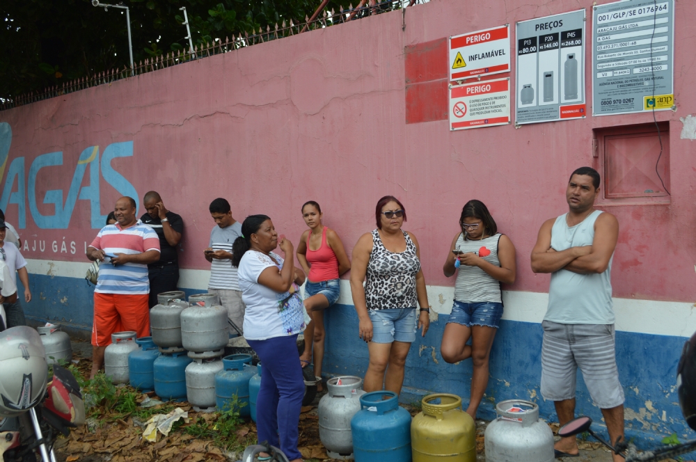 Na busca pelos botijões, muitas pessoas fizeram fila na porta da revendedora quando perceberam a chegada do caminhão carregado com o produto. Algumas delas vieram de outros bairros da Grande Aracaju para tentar conseguir adquirir os botijões, já que nas regiões onde moram as revendedoras não tem mais estoque para as vendas.