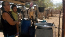 Na casa de dona Isabel, em Monte Alegre, o gado é pouco e ela não precisa gastar com o carro-pipa, já que a sua cisterna é abastecida periodicamente pelo Exército. Lá a família enfrenta as dificuldades típicas do período, mas de sede ninguém sofre. “Essas cisternas foram uma benção de Deus pra gente. Ainda mais essas que são cobertinhas, a água fica limpinha, friinha”, detalha. Dona Isabel e família: cisterna foi benção