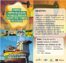Com o objetivo de divulgar a nova modalidade junto às empresas sergipanas, será realizado no próximo dia 12 de abril, no auditório do Sebrae, o seminário “Compras por Catálogo”. Segundo Ana Nunes, consultora do Sebrae e coordenadora do projeto Petróleo e Gás em Sergipe, essa iniciativa irá possibilitar uma venda para a estatal de até R$ 4 mil de produtos por nota fiscal, ainda que o valor total da compra seja ilimitado.