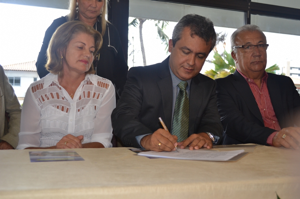 | Elber Batalha [ao centro] assina o convênio |