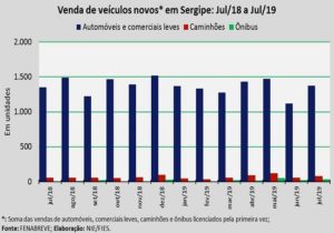 Uma análise realizada pelo Boletim Sergipe Econômico apontou o mês de julho como de maior venda de veículos novos no estado de Sergipe desde 2015, totalizando 1.489 vendas. O estudo é fruto de uma parceria do Núcleo de Informações Econômicas (NIE) da Federação das Indústrias do Estado de Sergipe (FIES) e do Departamento de Economia da UFS, com base nos dados da Federação Nacional da Distribuição de Veículos Automotores (FENABRAVE)