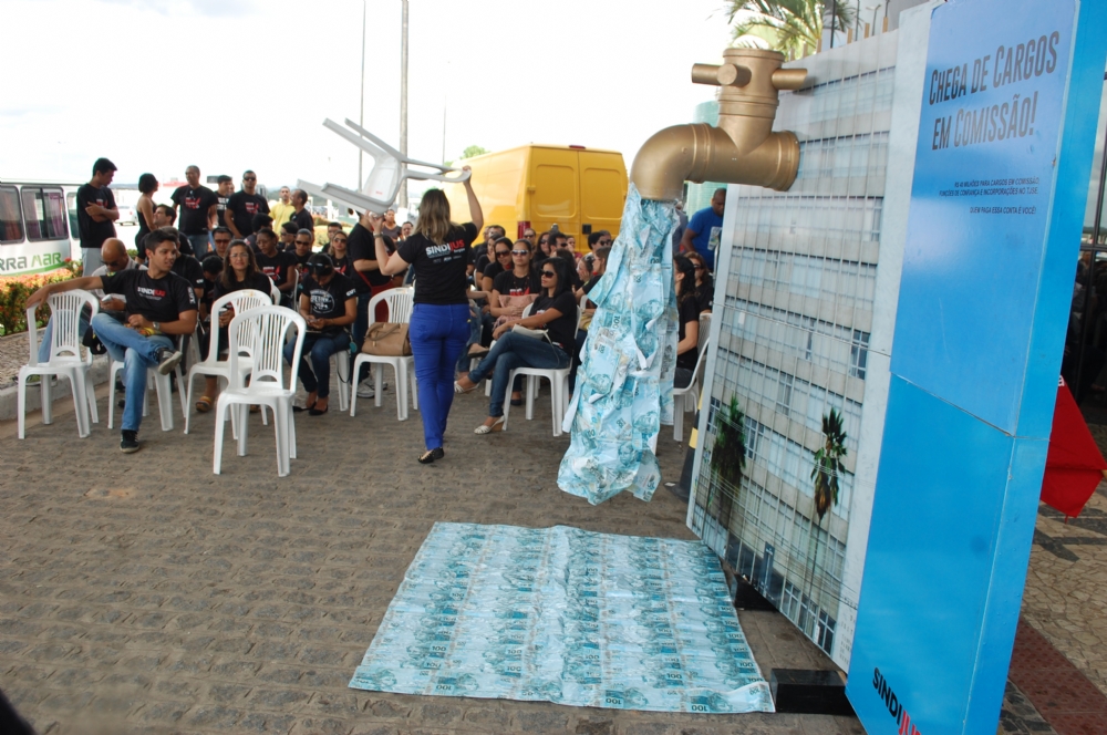 | Torneira gigante simboliza dinheiro gasto com cargos em comissão no TJSE (Fotos: Portal Infonet) |