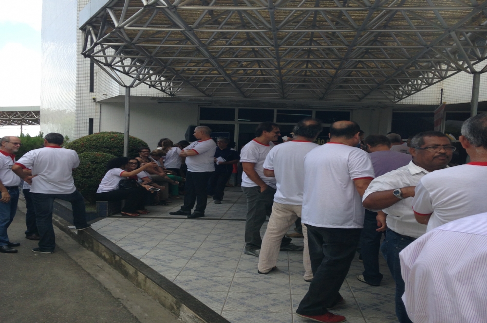 Ato na porta da Sefaz nesta terça-feira, 20 (Fotos: Portal Infonet) |