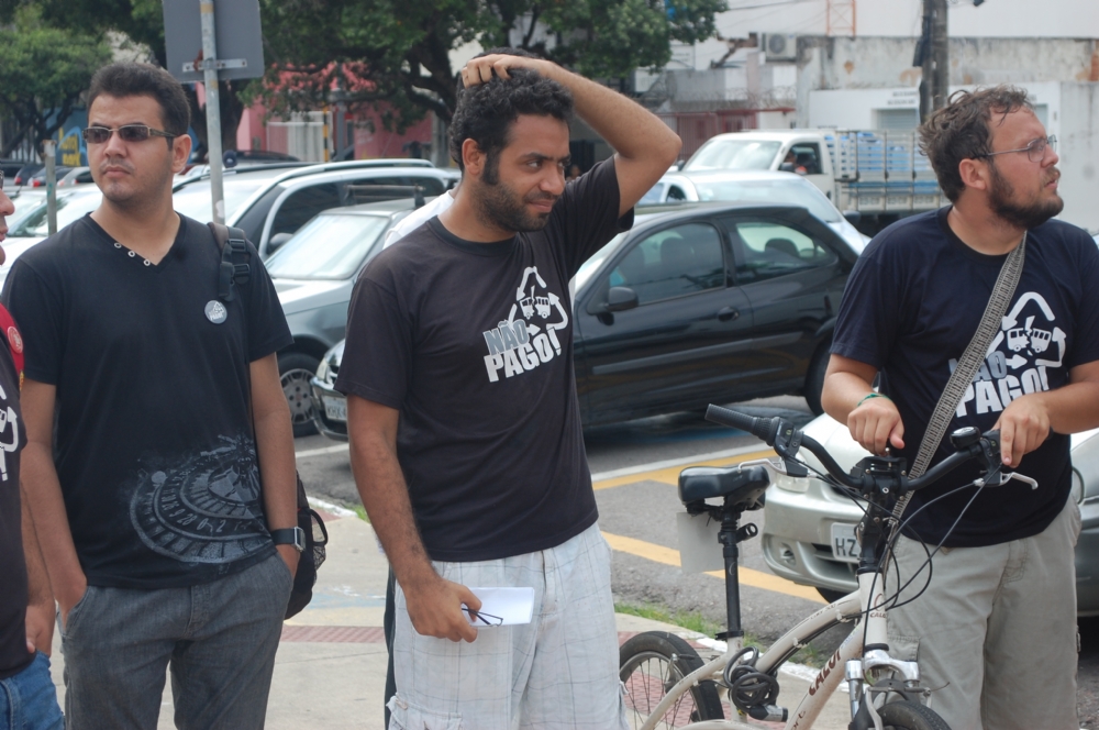Integrantes do Não Pago se reuniram na Praça Fausto Cardoso (Fotos: Portal Infonet)