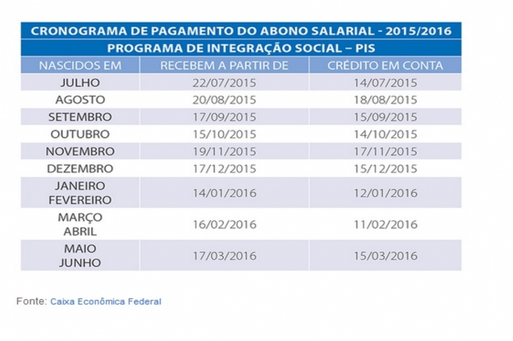 Para saber se tem direito a receber o benefício de um salário mínimo, o trabalhador pode ligar no 0800 726 0207, opção 1, ou consultar o site da Caixa. O recurso pode ser sacado até o dia 30 de junho de 2016. Os benefícios não retirados retornam ao Fundo de Amparo ao Trabalhador (FAT). Correntistas da Caixa recebem o crédito do pagamento diretamente nas suas contas. Os pagamentos do próximo mês estarão liberados a partir do dia 15 de dezembro, conforme calendário abaixo.
