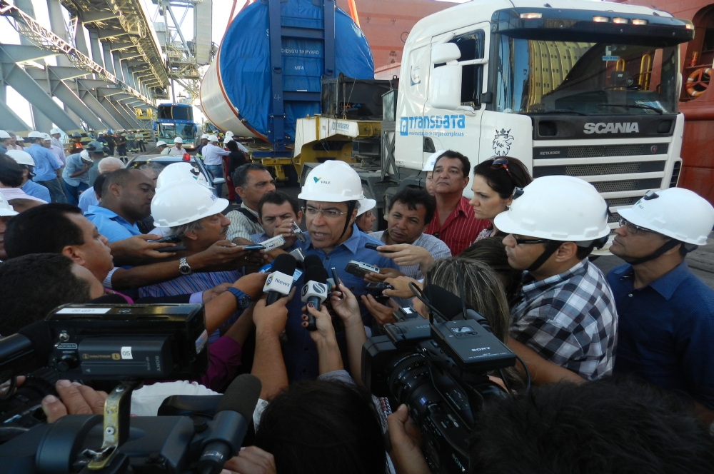 | Déda durante entrevista à imprensa no Porto de Sergipe (Foto: Portal Infonet) |