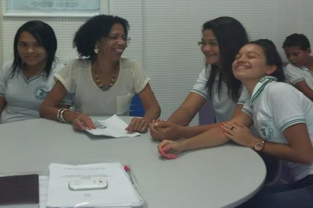 | Professora Maria da Glória com as alunas (Foto: Ascom Seed) |