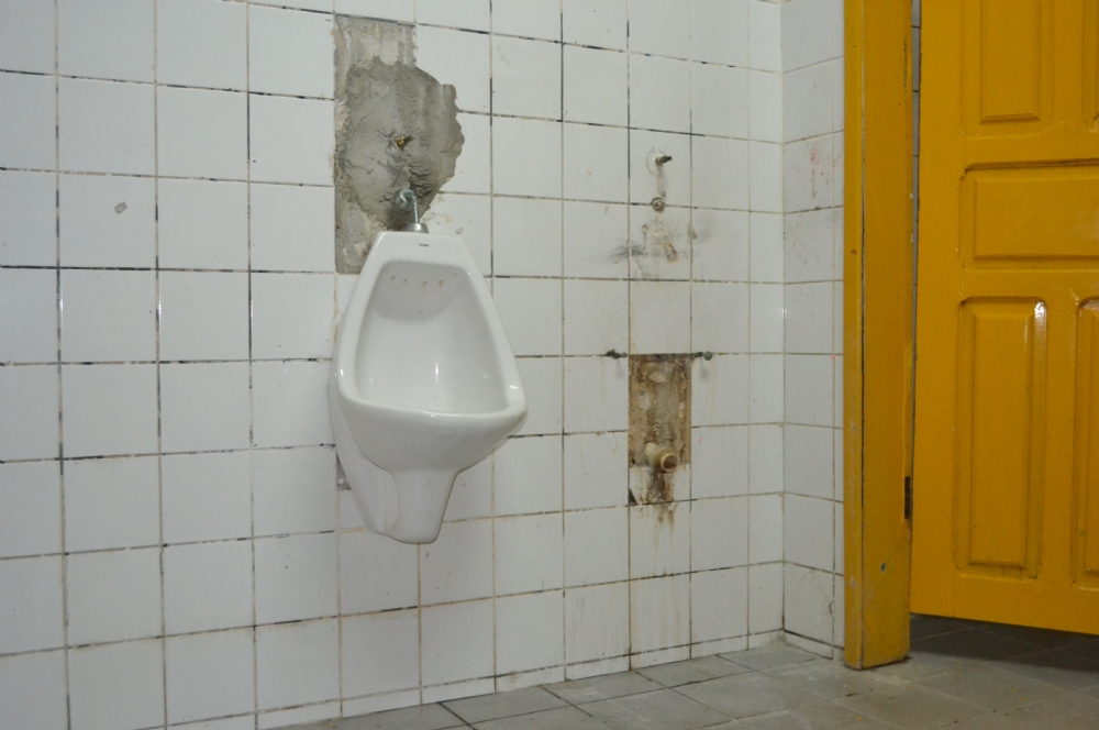 | Mictório ausente foi destruido por bomba |