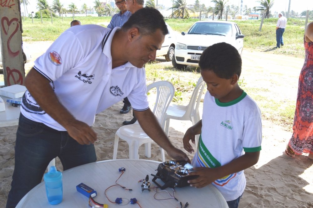 A Orla de Atalaia foi o local indicado para que os alunos da Escola Municipal Diomedes Santos, localizada no bairro Santa Maria, fizessem a demonstração do que aprenderam nas aulas de robótica. Orientados pelo professor Marcelo dos Santos e pelo mecânico Manoel Messias, eles acompanharam na manhã desta quinta-feira, 14, o primeiro voo do avião construído na escola. A ação faz parte do projeto desenvolvido com a finalidade de combater e prevenir o trabalho infantil e o baixo rendimento escolar.