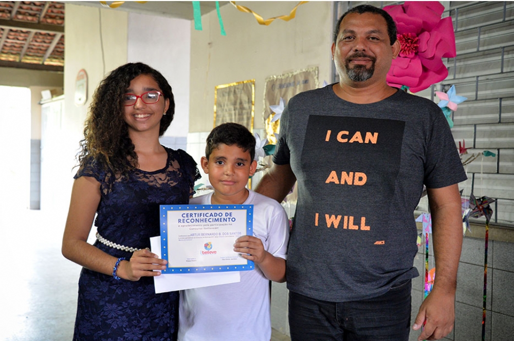 A cerimônia de premiação do concurso internacional de redação do I believe in Education contou com a presença dos amigos, familiares dos estudantes e toda a equipe docente e diretiva que lotou o pátio da Escola Estadual Manoel Franco Freire, na manhã desta quinta-feira, 14, para prestigiar os dois vencedores, Sara Vitória dos Santos e Artur Bernado B. dos Santos, que receberam além do certificado de participação, a quantia no valor de U$100.