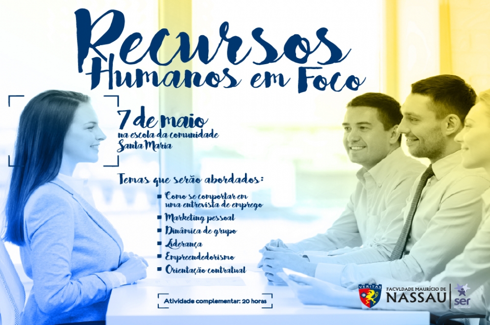 O RH em Foco é um projeto de extensão do curso de Recursos Humanos da Faculdade Maurício de Nassau de Aracaju. O projeto tem como propósito melhorar os índices de desemprego entre jovens da periferia da capital e consequentemente melhorar a qualidade de vida das famílias. O evento é itinerante, cada ano é escolhida uma comunidade a ser beneficiada. Nesta edição, o evento acontece no Bairro Santa Maria.