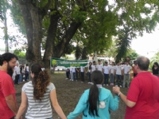 | O abraço simbólico foi realizado na entrada do Colégio Atheneu (Foto: Portal Infonet) |