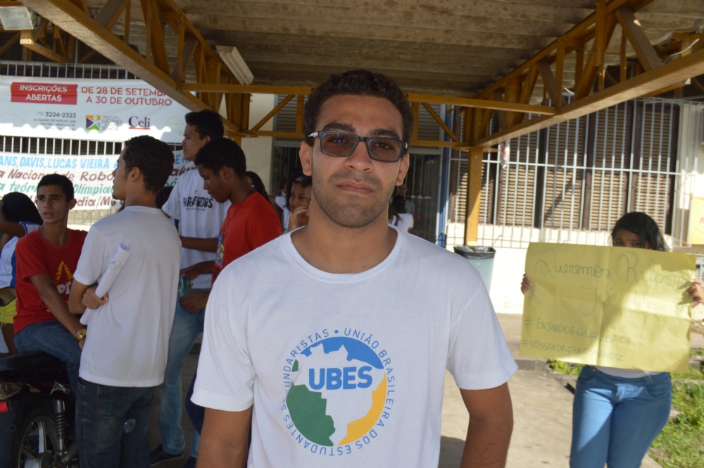 “A manifestação é por conta da falta de merenda, pois a Secretaria de Educação só tem mandado pra escola frango e quando dá é só frango com arroz. Já tem mais de uma semana que não é dado o lanche aqui no período da tarde e no período da manhã, estão revezando, dia sim, dia não. O Plano Nacional de Alimentação Escolar (PNAE) garante que o alimento não falte na escola para que os alunos tenham uma aprendizagem melhor”, destaca o vice-presidente da União Sergipana dos Estudantes Secundaristas (USES), Deivid Alves.