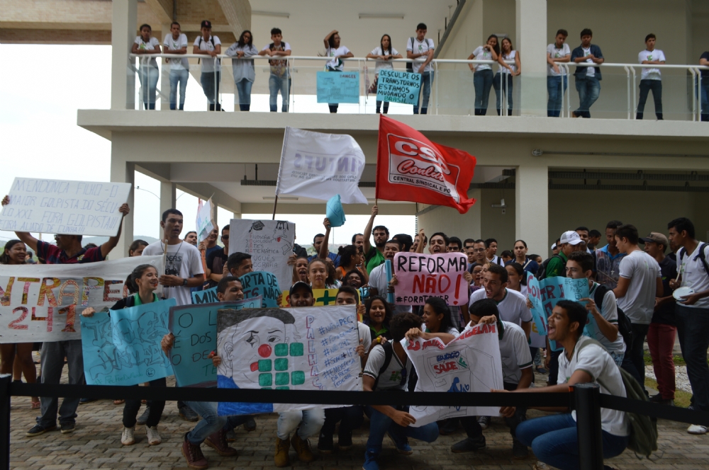 Com gritos de “Fora Temer” e cartazes erguidos, alunos do Instituto Federal de Sergipe (IFS) do campus São Cristóvão, além de servidores do próprio instituto e da Universidade Federal de Sergipe (UFS) realizaram, nesta sexta, 21, um ato contra a PEC 241, o projeto que congela gastos públicos por 20 anos. A manifestação foi realizada durante a inauguração da didática do campus e contou com as presenças do reitor do IFS, Ailton Ribeiro de Oliveira e do secretário de Infraestrutura da Secretaria de Educação Profissional e Tecnológica (Setec), Edson Fonseca.