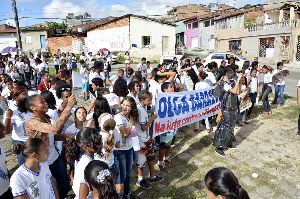 A luta contra o mosquito Aedes Aegypti engajou cerca de 300 estudantes do 6º ao 9º ano da Escola Estadual Professora Olga Barreto, no conjunto Eduardo Gomes, a fazerem uma caminhada pelas ruas da comunidade na manhã desta sexta-feira, 22.