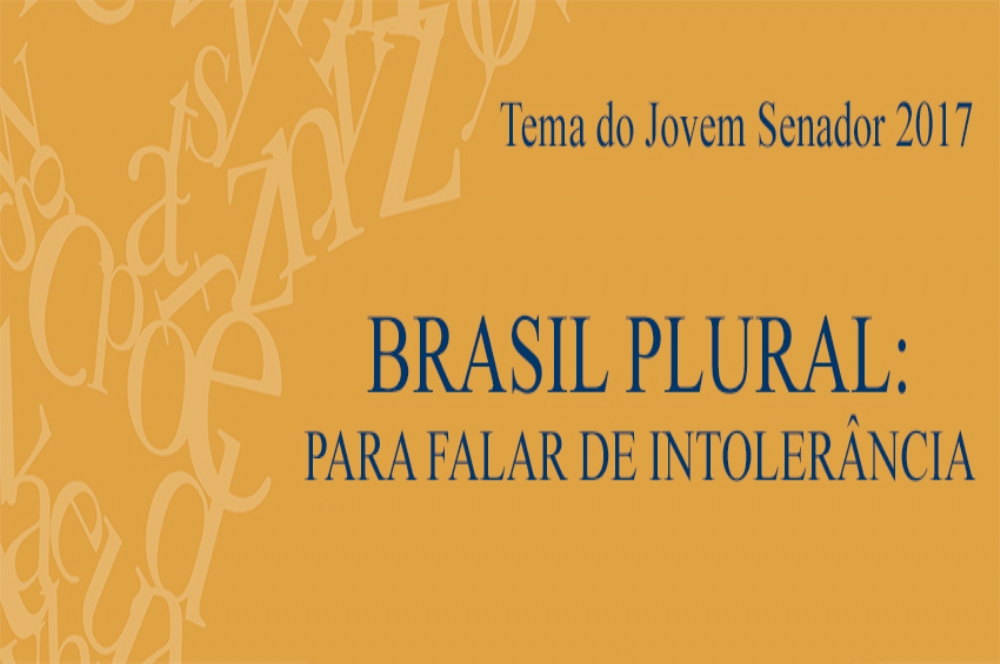 Alunos do ensino médio de escolas públicas estaduais e do Distrito Federal terão a oportunidade de participar do Projeto Jovem Senador 2017, cujo tema é "Brasil plural: para falar de intolerância". Os 27 autores da melhor redação de cada estado participarão do Projeto Jovem Senador 2017, em que estudantes vivenciam a experiência de conhecer o funcionamento do Senado, apresentam, debatem e votam projetos de lei.