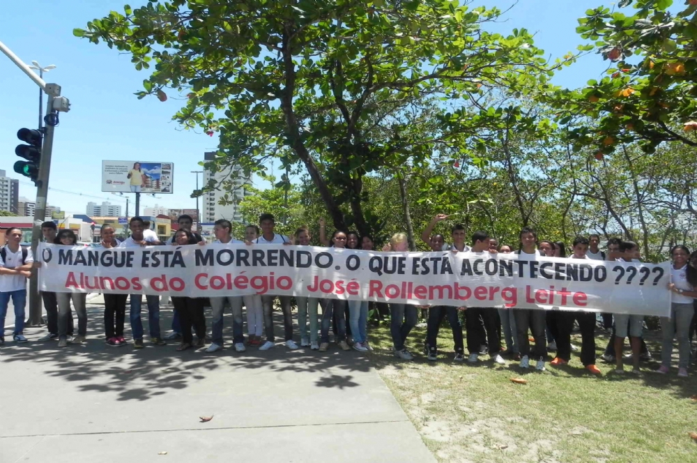 ‘O mangue está morrendo’, a afirmação é dos estudantes do 3° ano do Colégio Estadual José Rollember Leite após pesquisas no mangue da Praia 13 de Julho. Com cartazes e distribuição de panfletos, os estudantes estão protestando por uma resposta dos órgãos ambientais. As pesquisas apontam a presença de uma alta carga orgânica e de coliformes fecais acima do índice considerado normal.