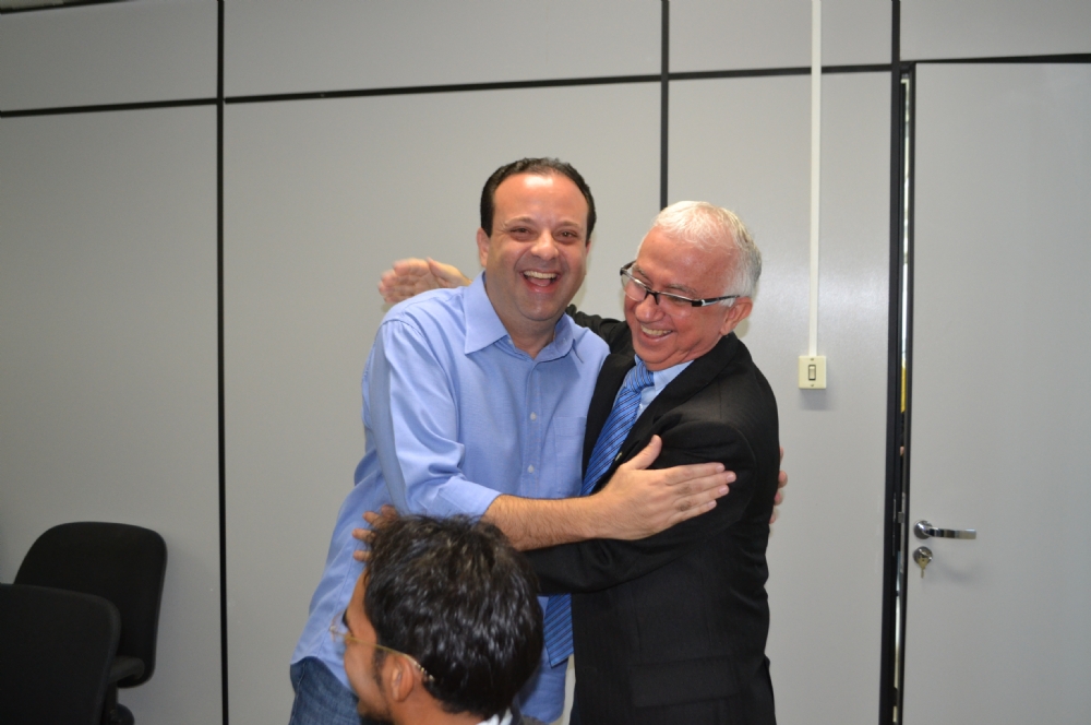 André Moura recebe o abraço de agradecimento do reitor Ailton Ribeiro |