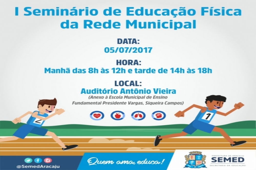Aracaju sedia nesta quarta- feira, 5, o I Seminário de Educação Física promovido pela Secretaria Municipal da Educação de Aracaju( Semed), através da Coordenadoria de Educação Física e Esporte Escolar (Coefesp). O evento acontecerá nos turnos da manhã e tarde, das 8h às 12h e das 14h às 18h, no auditório Antônio Vieira, anexo à Escola Municipal de Ensino Fundamental Presidente Vargas, bairro Siqueira Campos.