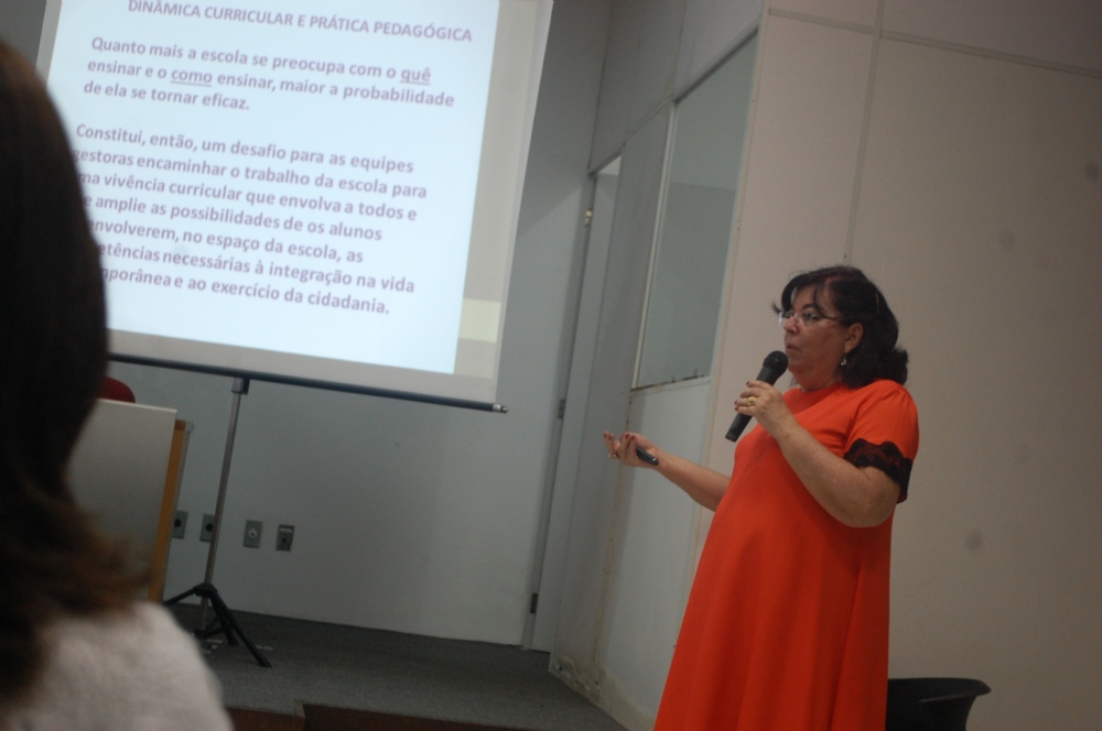 Ela enfatizou que a ressignificação da Gestão Escolar busca a superação do autoritarismo, da centralização, da fragmentação do trabalho pedagógico, da mecanização, da uniformização e cristalização do procedimento, do controle de comportamento e da repressão.