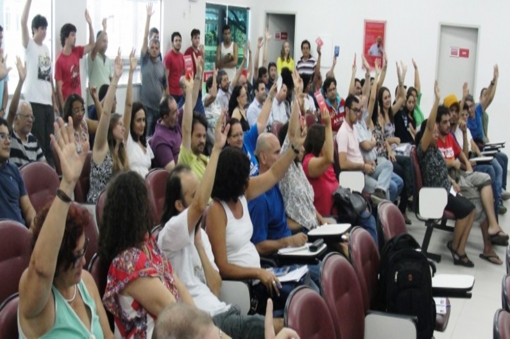 | Assembleia aconteceu no auditório da Associação dos Docentes (Foto: Divulgaçlão Adufs) |