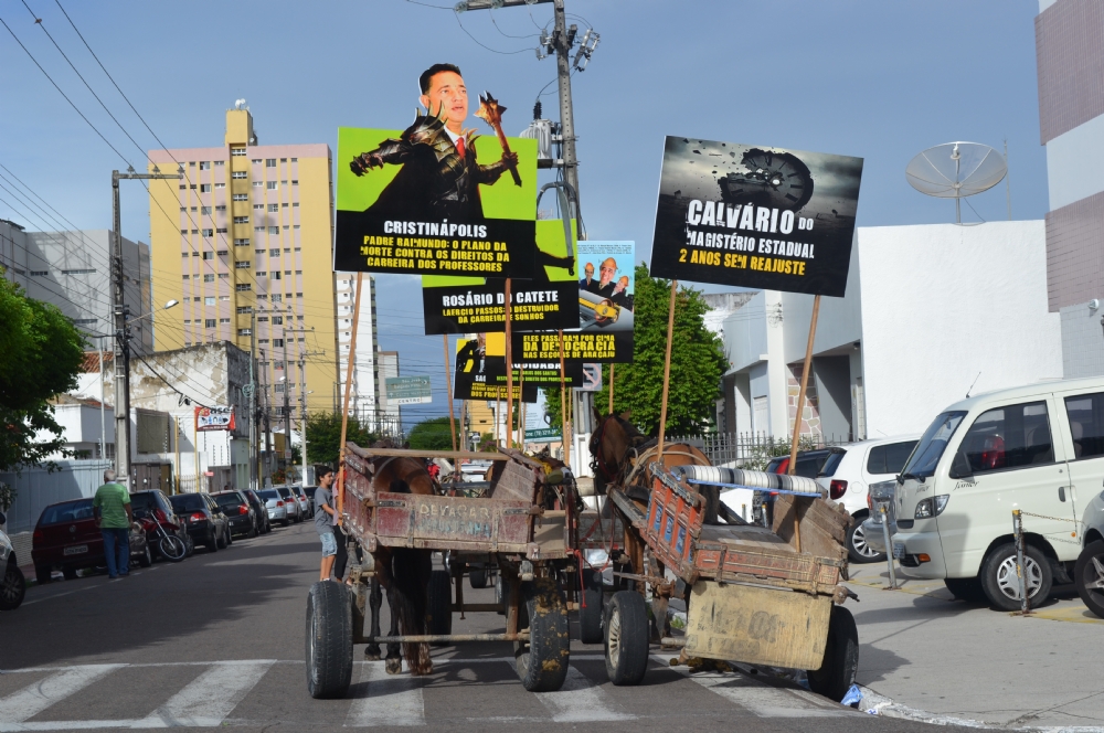 Além dos carros de som, participaram da marcha, carroças com fotografias dos prefeitos sergipanos que não estão pagando o Piso Salarial Profissional do Magistério (PSPM), a exemplo de Cristinápolis, Poço Verde e Salgado. E ainda, os tradicionais ‘pernas de pau’.